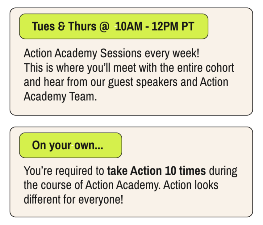 Action Academy’s curriculum is designed to meet students where they are and move them toward civic impact. Step by step, together.